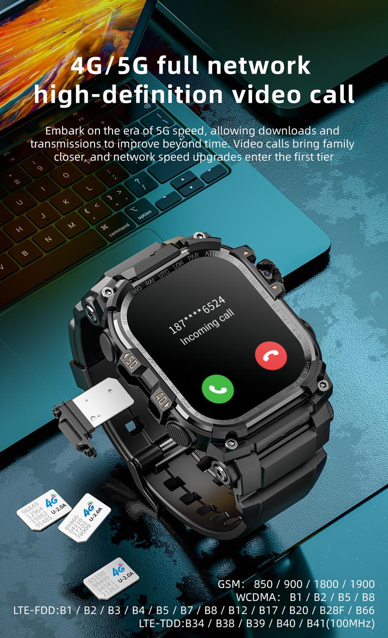 LOKMAT 2.06'' AMOLED Large Screen 4G Smart Watch, 3GB+32GB Mens Military Rugged Sports Android Smartwatch with Rotating Camera WiFi GPS NFC, Fitness Activity Tracker Watch for Men Women