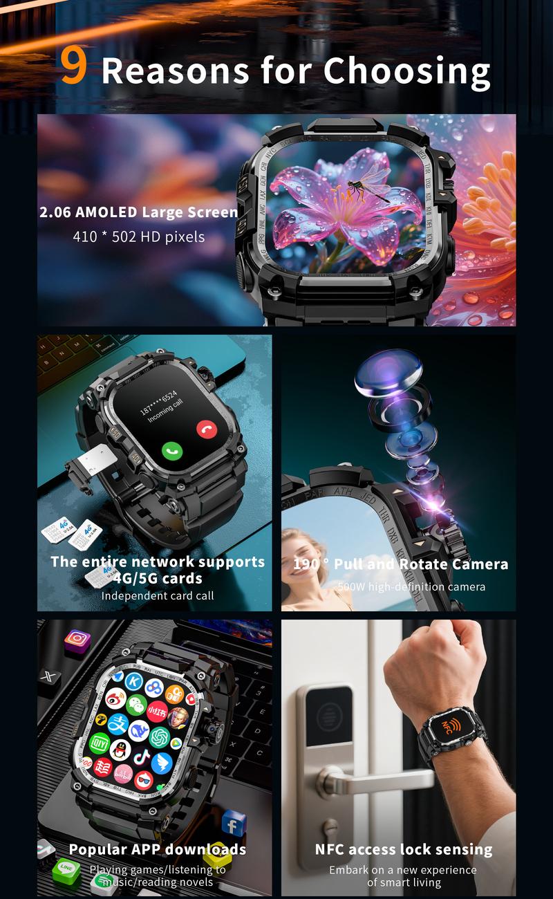 LOKMAT 2.06'' AMOLED Large Screen 4G Smart Watch
