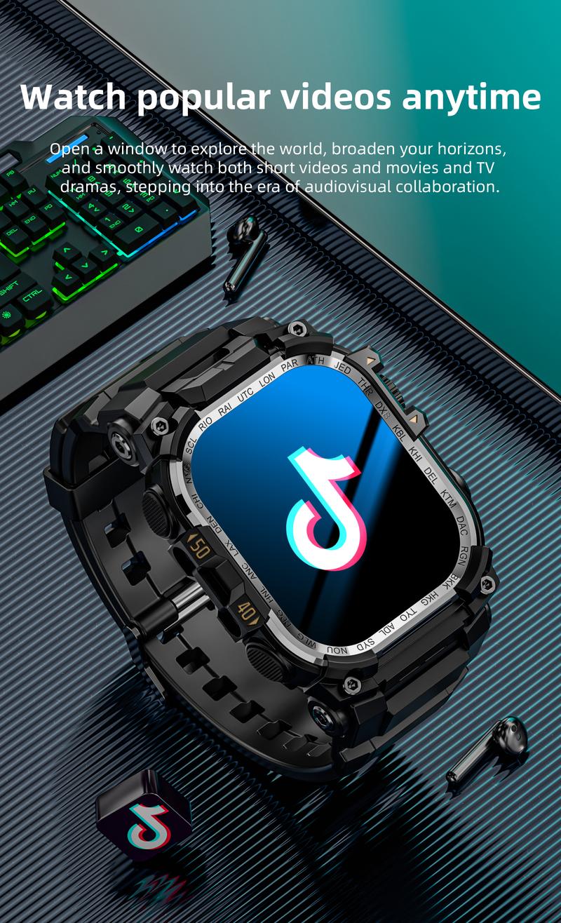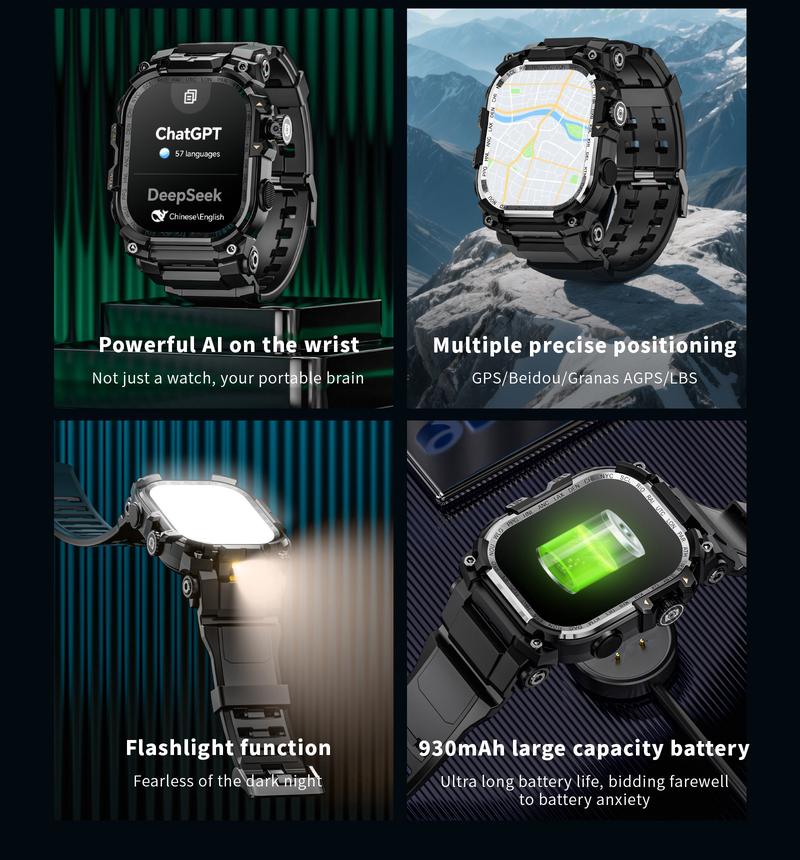 This smartwatch is a fitness activity tracker, designed for active lifestyles. It includes a rotating camera for versatile photography. Whether you're running or hiking, this watch keeps you connected and informed. Stay active and stylish with LOKMAT. ️