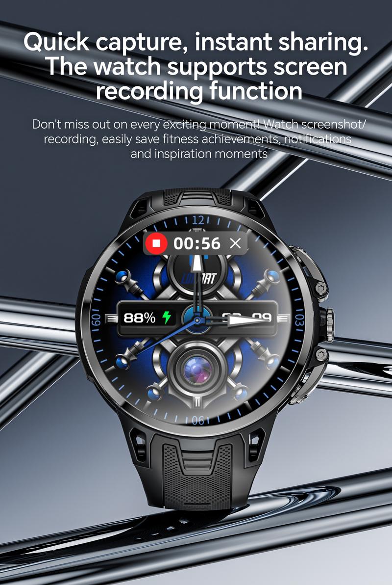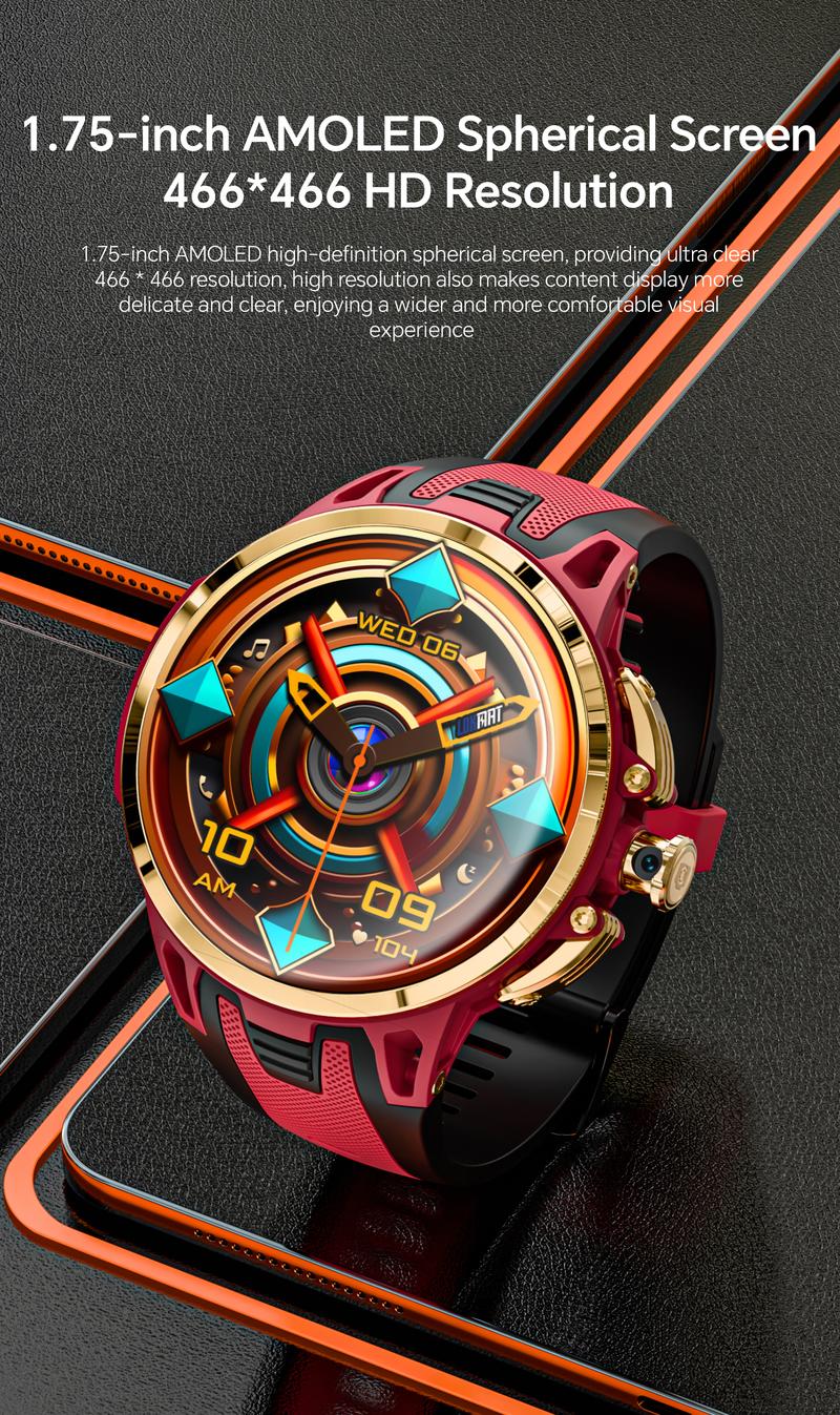 The LOKMAT 4G Android Smart Watch features a 1.75'' AMOLED screen, offering clear and vibrant display. It comes with 3GB+32GB storage, perfect for storing apps and data. This smartwatch is ideal for sports and fitness activities, tracking your progress effectively. Suitable for both men and women, it includes a SIM card slot for connectivity.