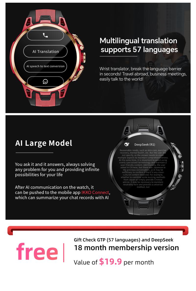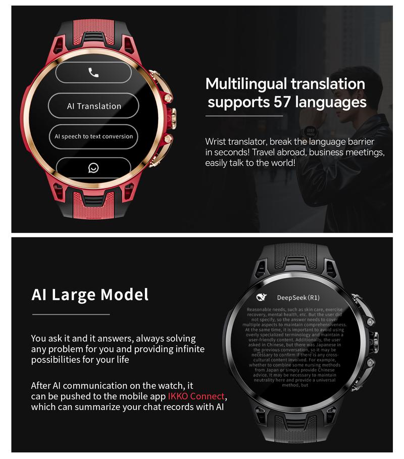 LOKMAT 4G Android Smart Watch, 1.75'' AMOLED Screen 3GB+32GB Sports Fitness Activity Tracker Smartwatch for Men Women, with SIM Card Slot, Rotating Camera, GPS NFC WiFi