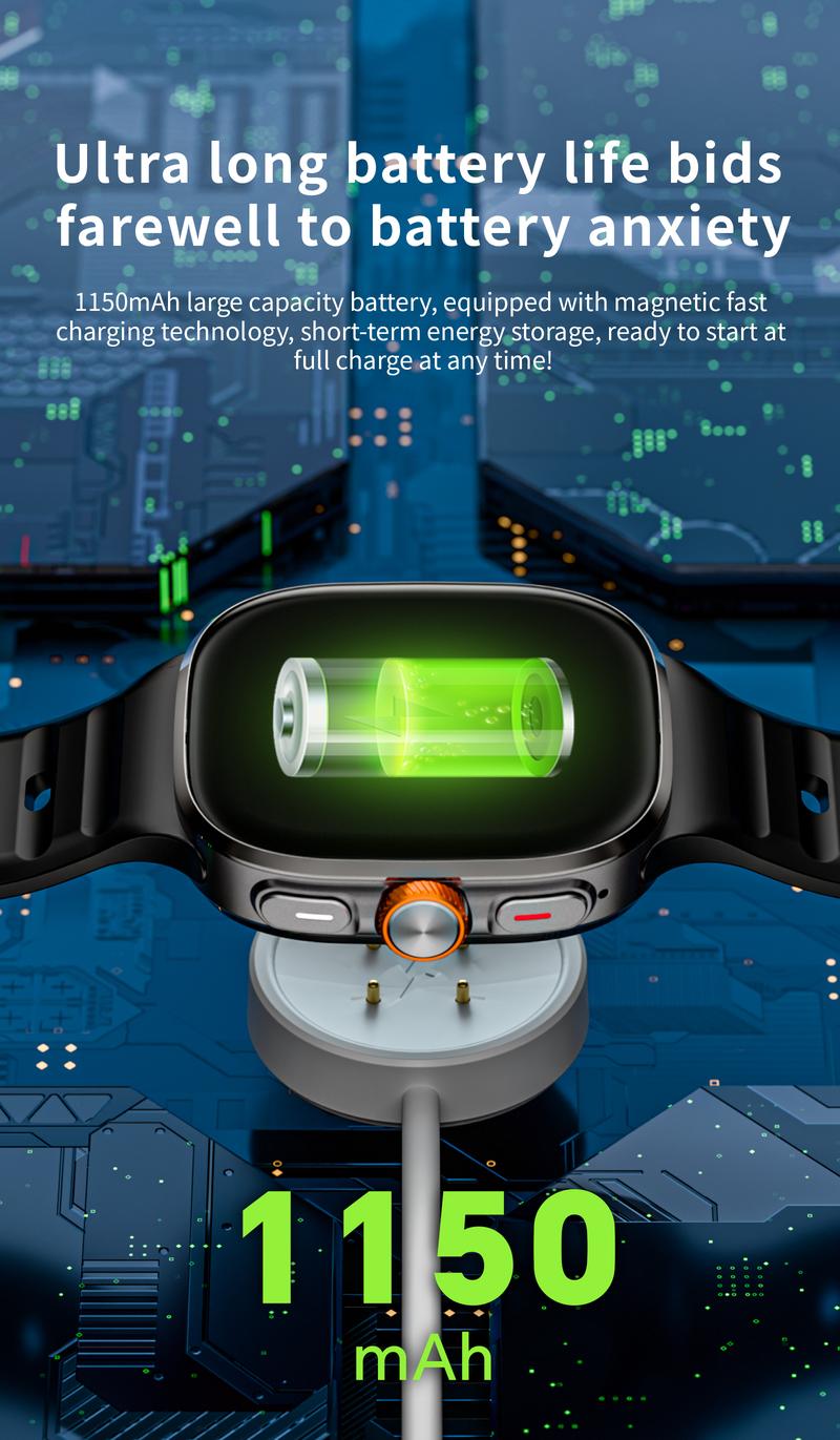 The LOKMAT smartwatch is equipped with a 1150mAh battery, ensuring long-lasting power. It serves as a comprehensive fitness activity tracker, helping you monitor your daily activities. Whether you're tracking steps or heart rate, this smartwatch has you covered. Stay active and informed with every wear.