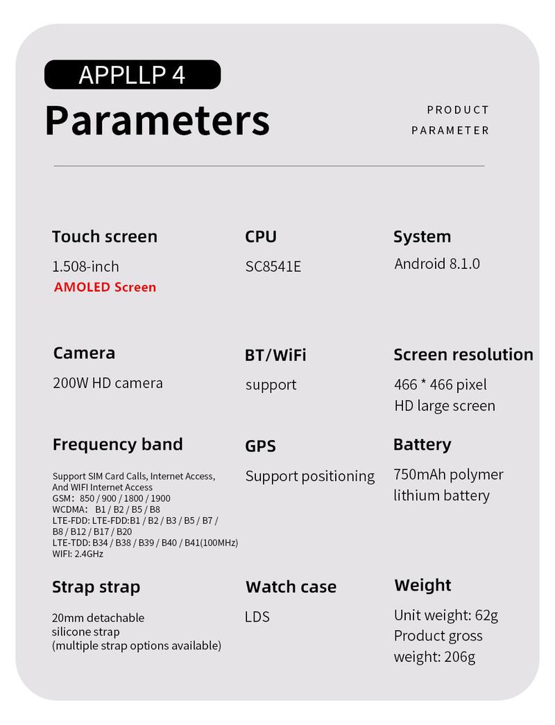 • AMOLED Screen: Ensures a crisp display. • WiFi & GPS: For global connectivity. • Rotating Camera: Enhances the design. • Android 8.1 OS: Stable and reliable. • Fitness Tracker: Monitors activity levels effectively.