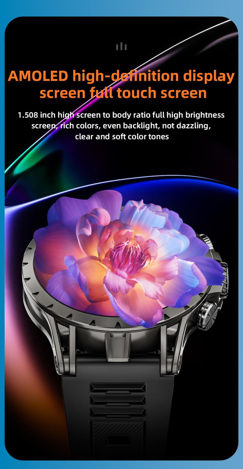 The Lokmat smart watch boasts a 1.508" AMOLED screen for clear visibility. It's ideal for both men and women, offering a versatile wristwatch experience. Stay connected with WiFi and GPS for seamless global connectivity. The rotating camera adds a unique aesthetic. This Android 8.1 OS watch provides a stable platform for your daily activities.