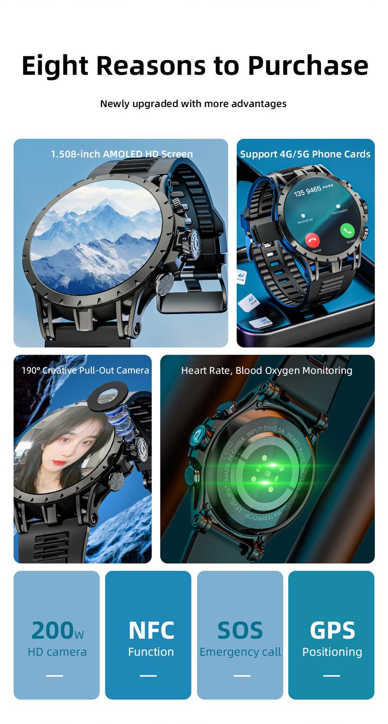 LOKMAT 4G SIM Card Smart Watch with 1.508'' AMOLED Screen, WiFi GPS, Rotating Camera & Android 8.1 Fitness Activity Tracker for Men and Women Wristwatch Wearable