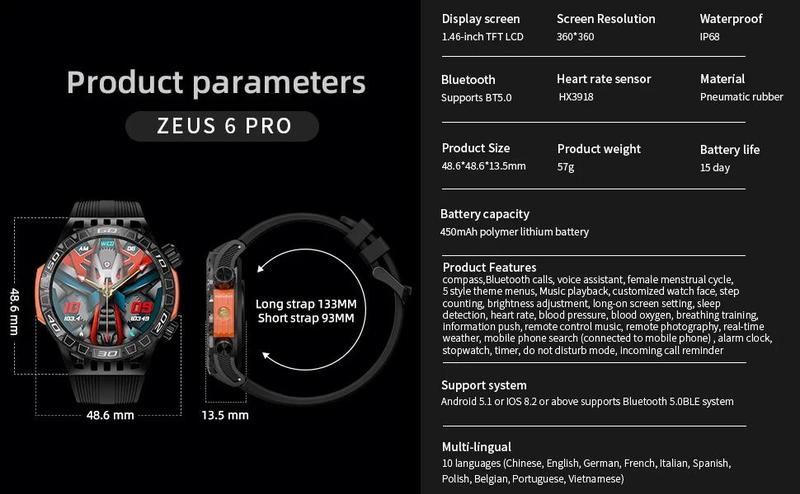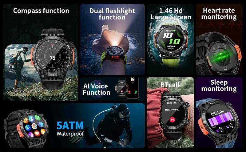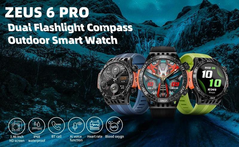 LOKMAT ZEUS 6 PRO Smart Watches Bluetooth Calls with Flashlight Smartwatches 1.46'' Round Screen Compass Sport Fitness Tracker